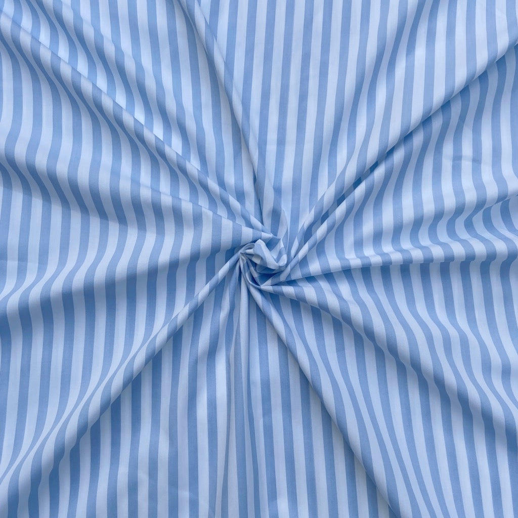 Classic blue lines cover airy cotton with timeless simplicity. Crisp and fresh, the fabric feels clean and versatile.