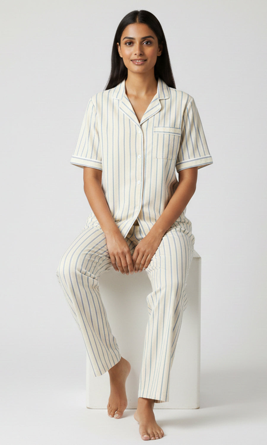 All garments are stitched as per our official Pajama Tribe Style Guide, including standard details such as piping, pockets, slits (where applicable), elastic construction, drawstrings, and overall fit.