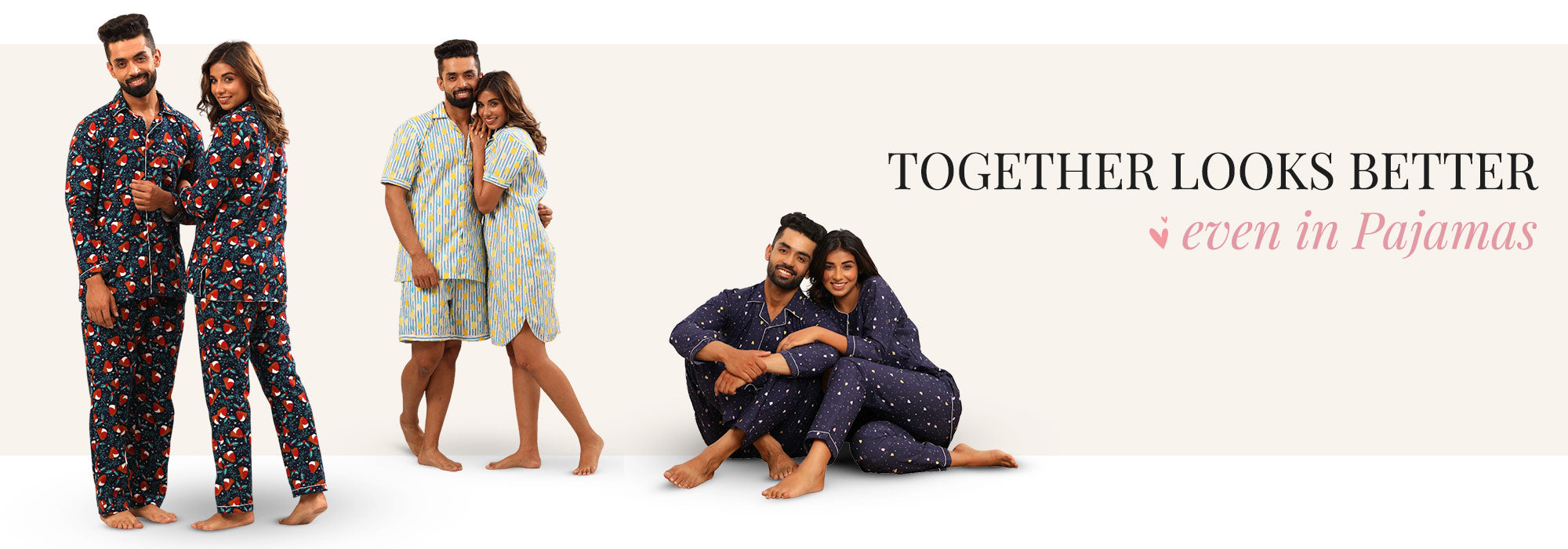 A mere act of wearing the same night suits can pull partners closer. It signifies that they both are a team and share a special connection. This is a shared experience you cherish together as a couple. Do you know? A number of celebrity couples craft their personalised matching sets to show that they are going strong. You are special too. Why wait, go give it a try.
