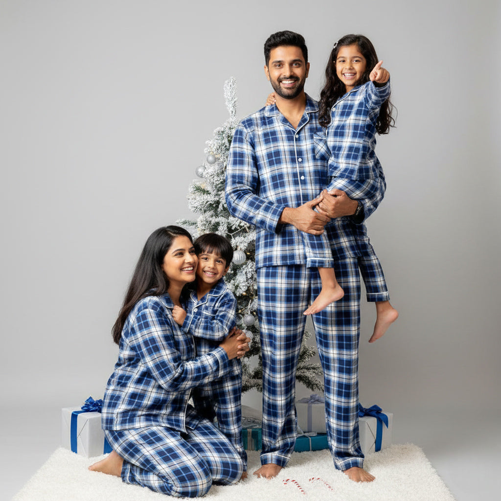 Blue Checks Flannel Matching Family Pajamas