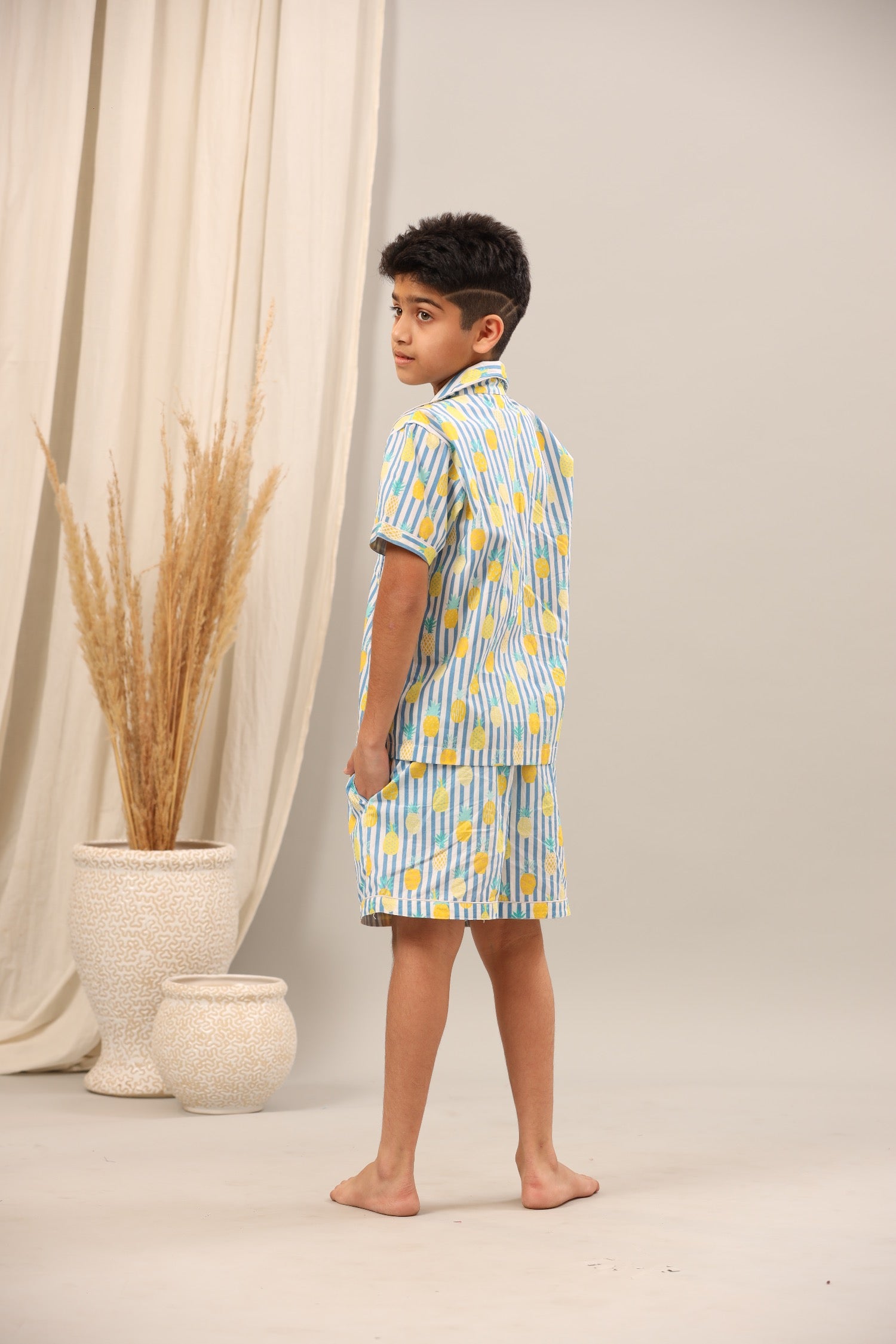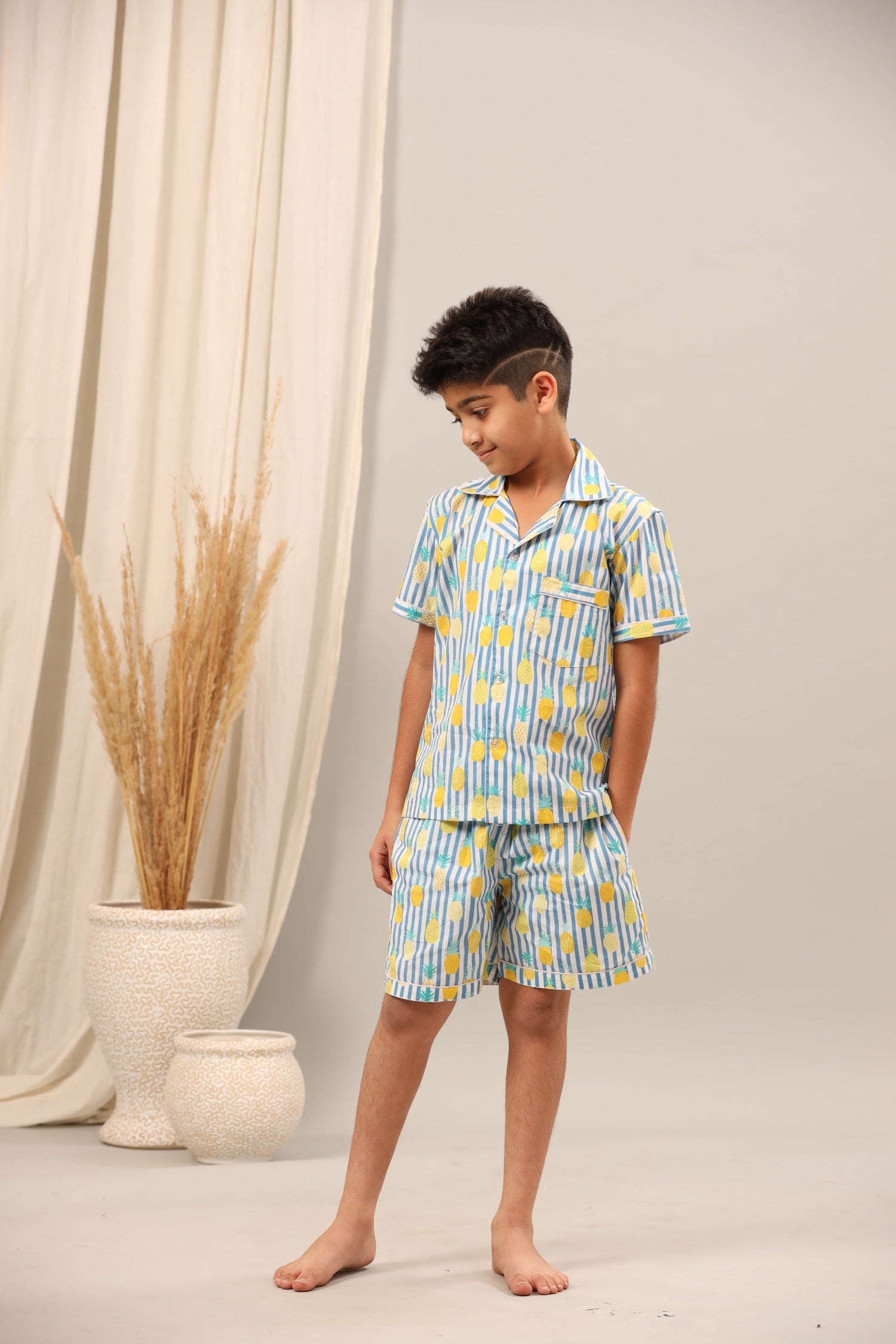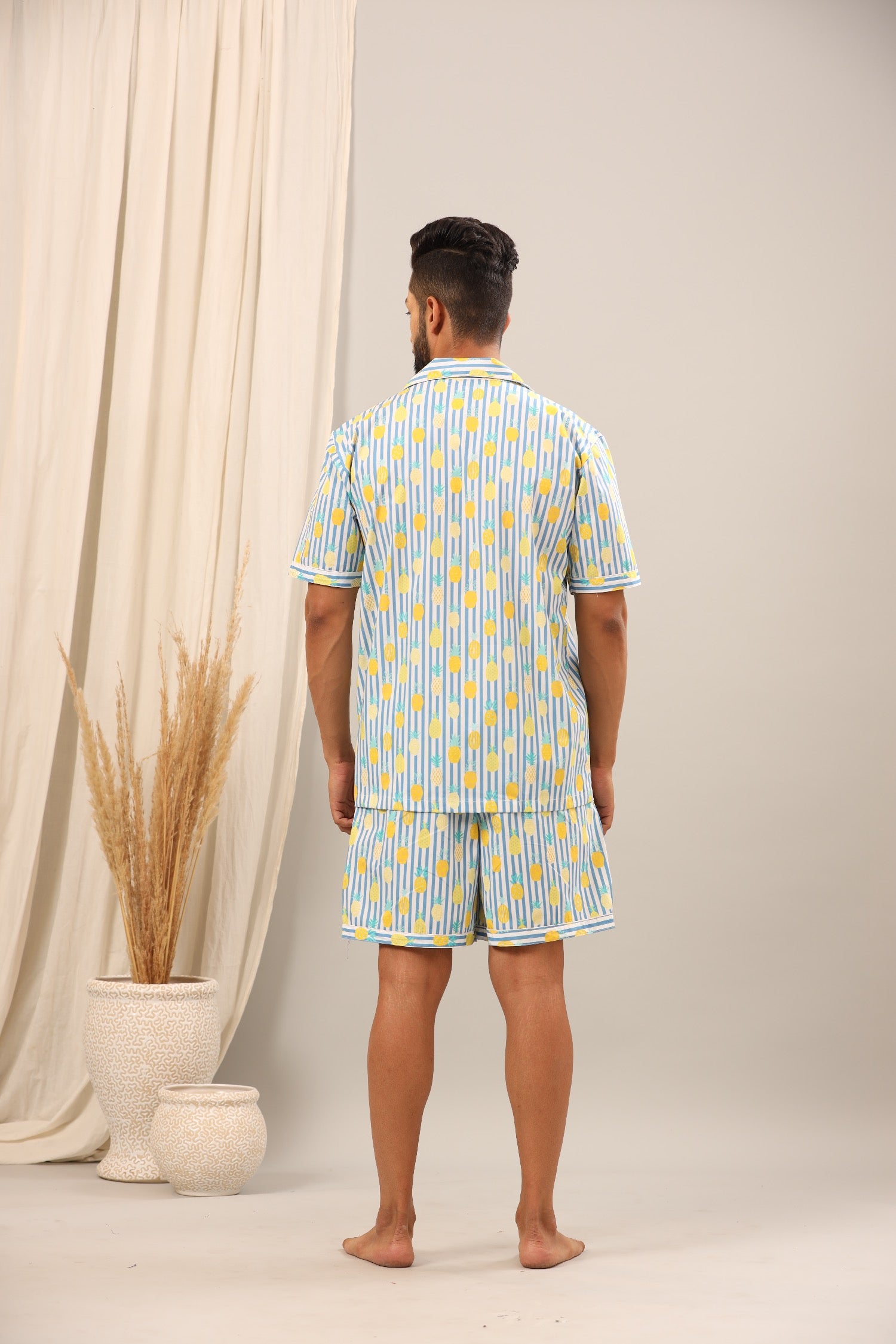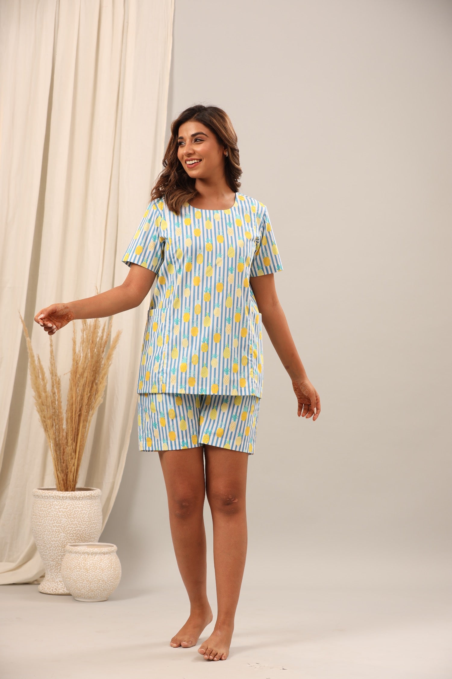 Tropical Pineapple Round Neck Loose Top with Shorts