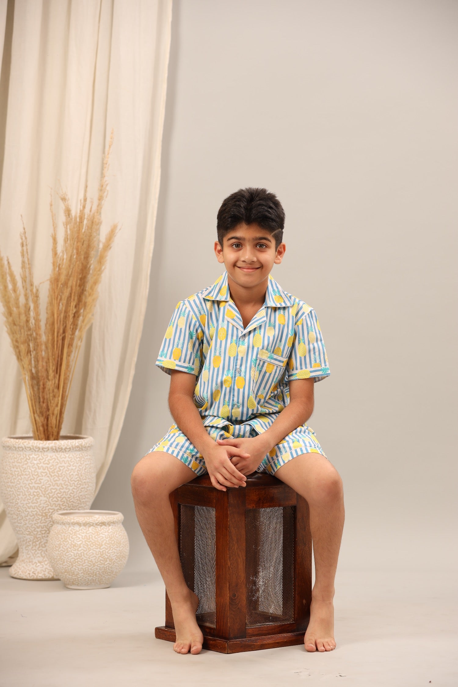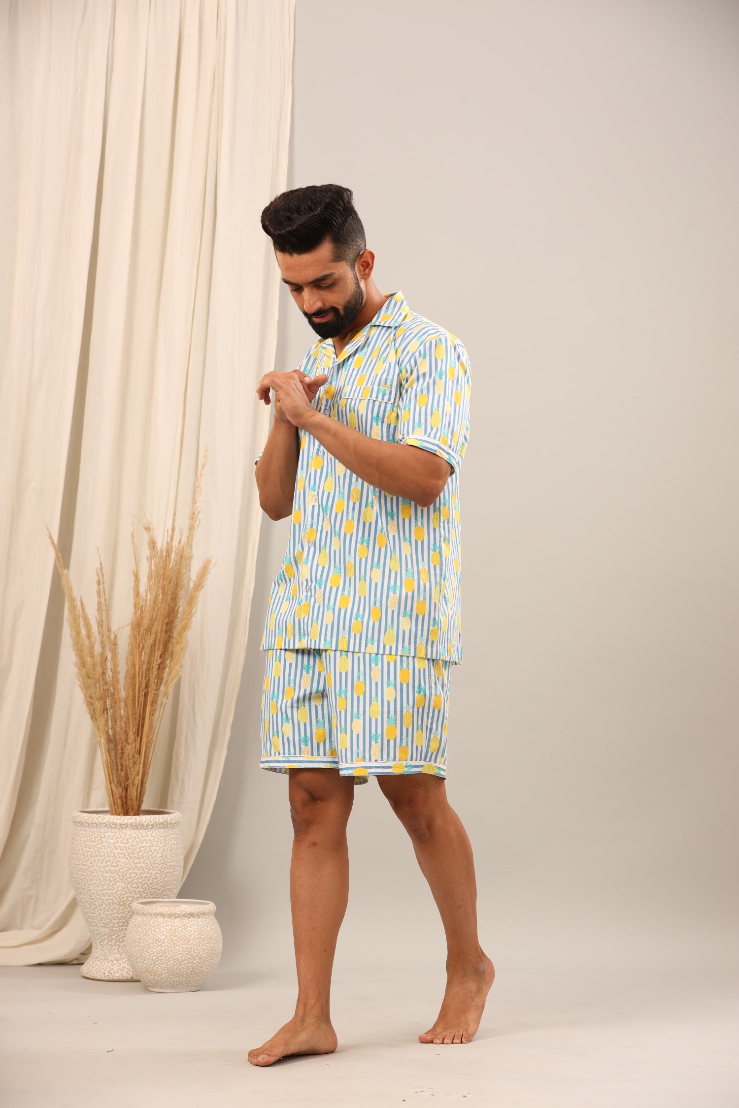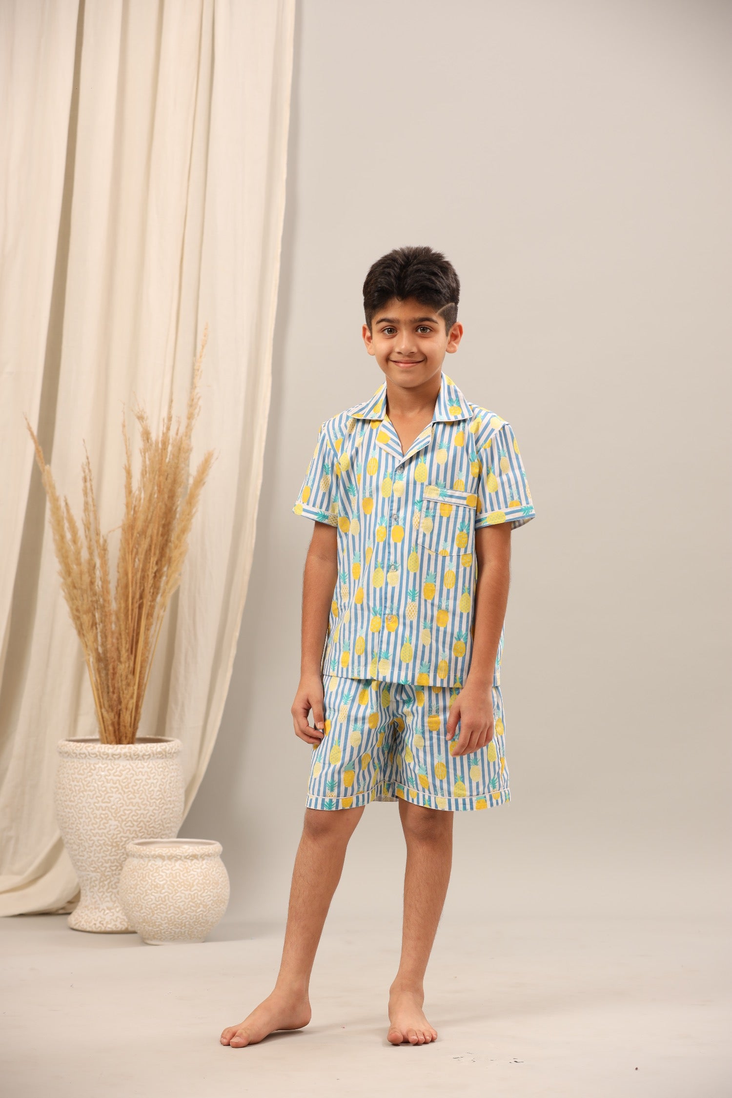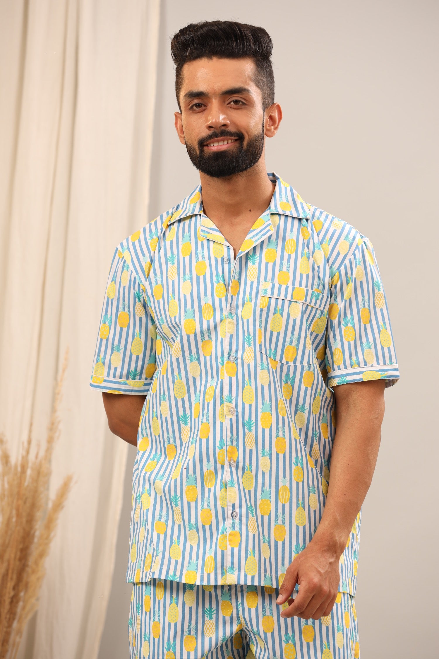 Tropical Pineapple Round Neck Loose Top with Shorts
