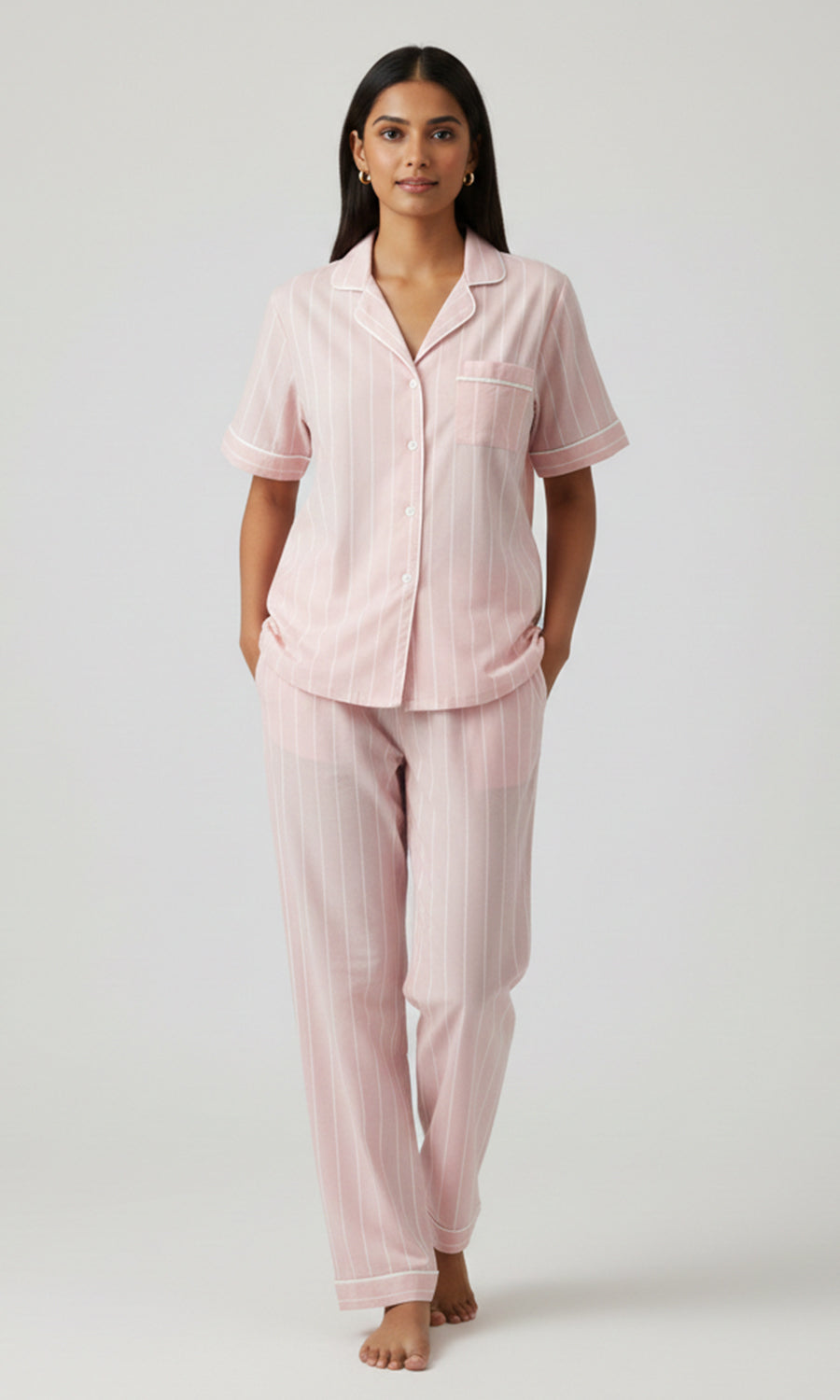 Blush Pink Stripe Pajama Set for Women