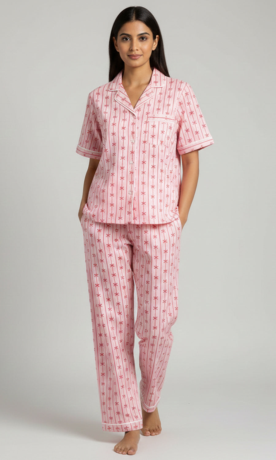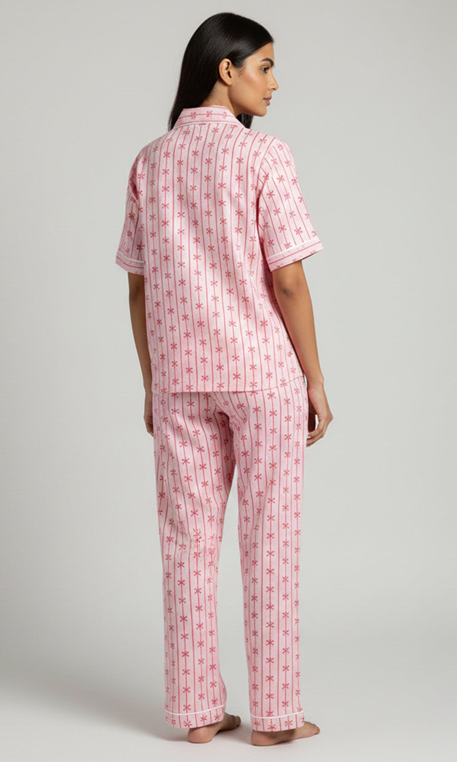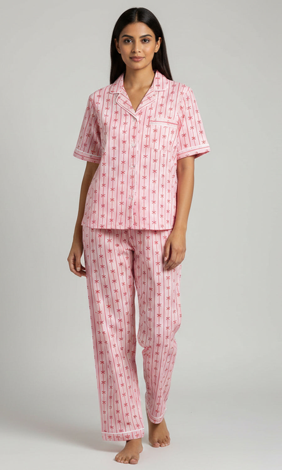 Soft Bloom Bow Stripe Pajama Set for Women