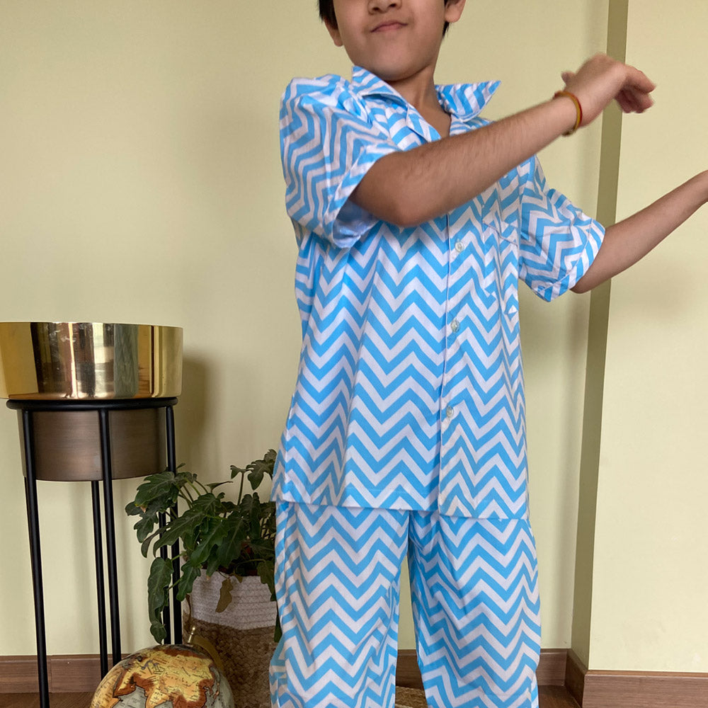 Bold and modern, the Blue Zig Zag in Cotton is perfect for playful pajama sets. Soft and breathable, it’s great for cousin pajama groups, sibling twinning, or cheerful family lounging.