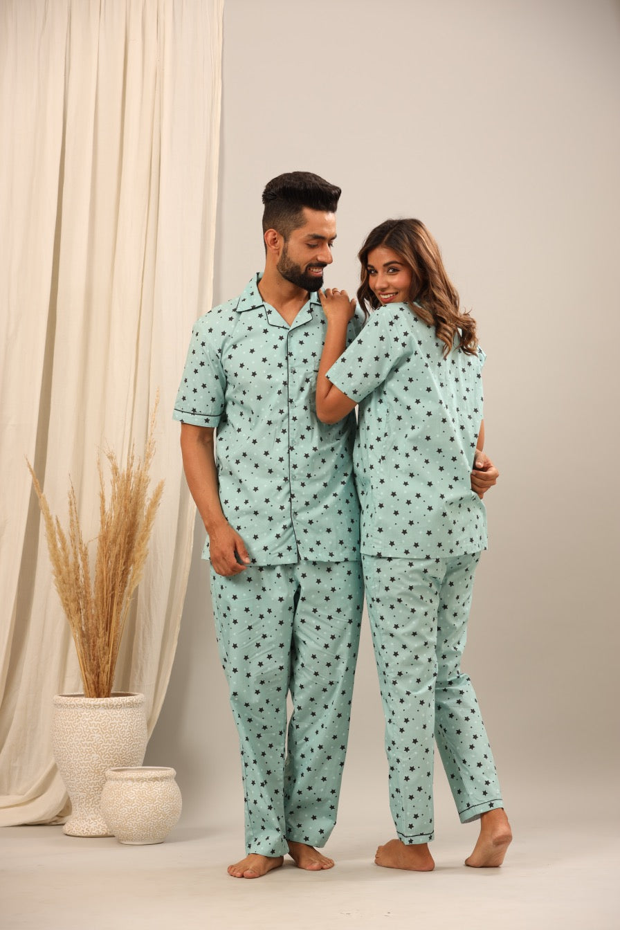 Dreamy star patterns designed for bedtime pajama rituals and stargazing cousin nights.