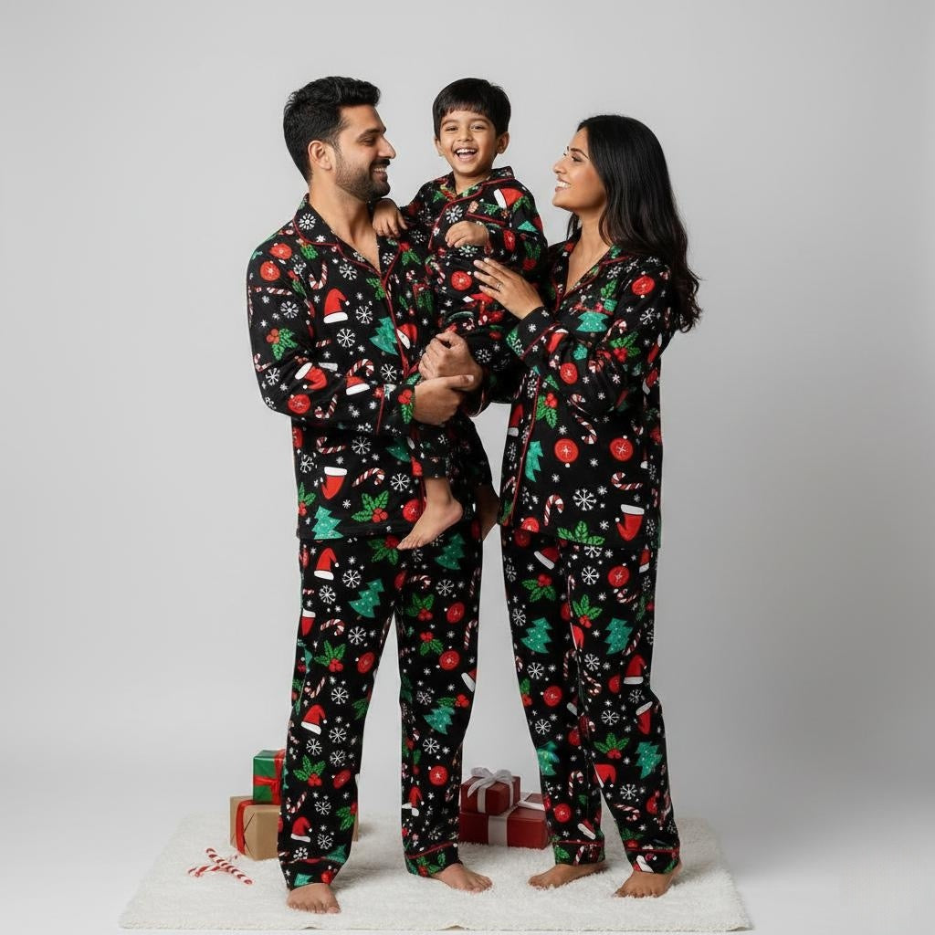 A festive black Christmas pajama set made for warm family moments and winter joy.