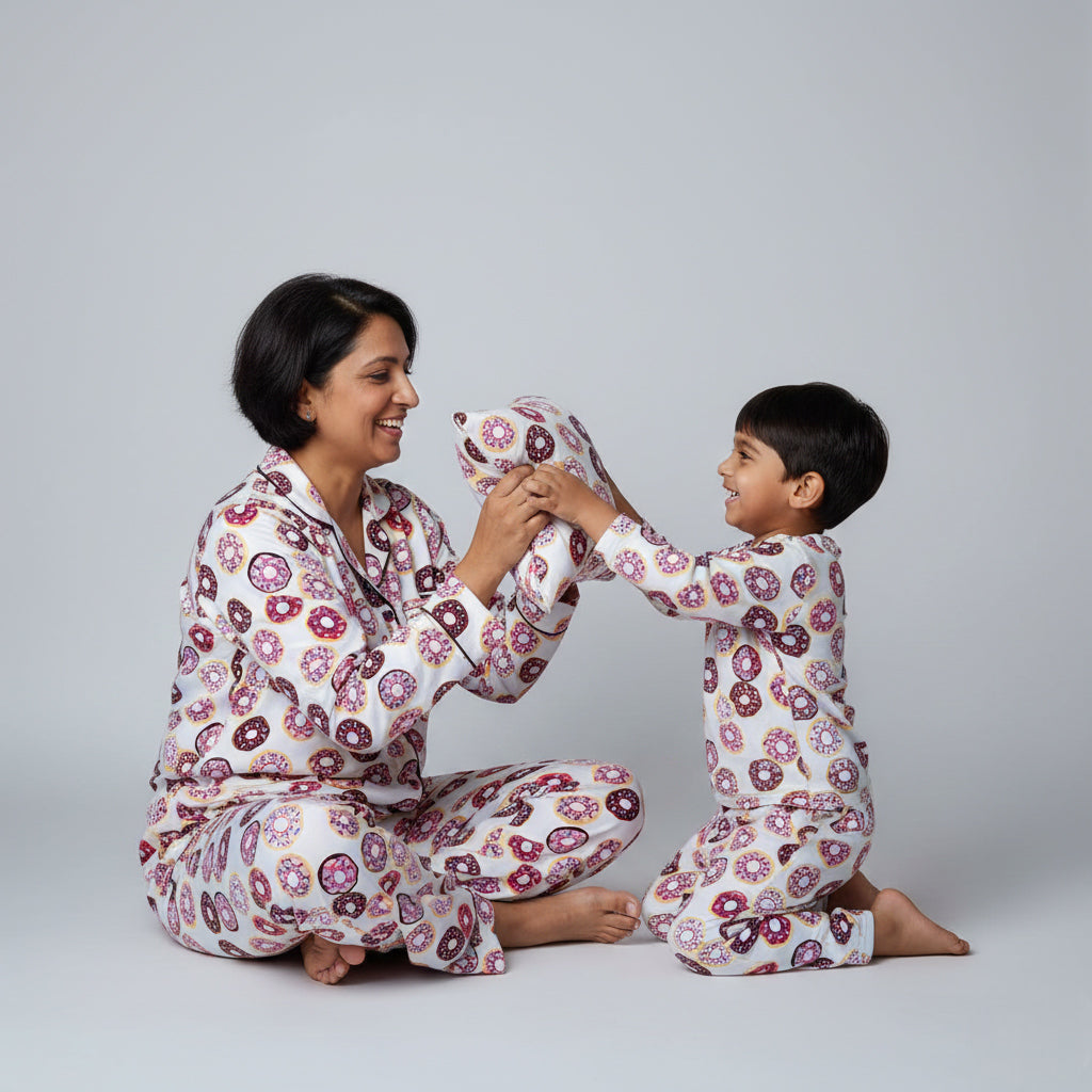 Matching Pajama Sets bring families closer through fun prints, soft fabrics, and memorable twinning moments. Whether you’re matching as a couple, mother–daughter, father–son, siblings, or with your entire family, our sets are designed to celebrate togetherness in the most comfortable way.