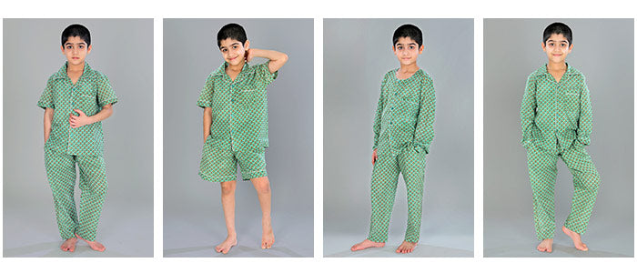 One print, 3+ styles — because boys deserve choices too. From comfy pajama sets and easy shorts styles to round-neck tops, every fabric can be customized just for him. Pick the print he loves, and let him enjoy bedtime in style.
