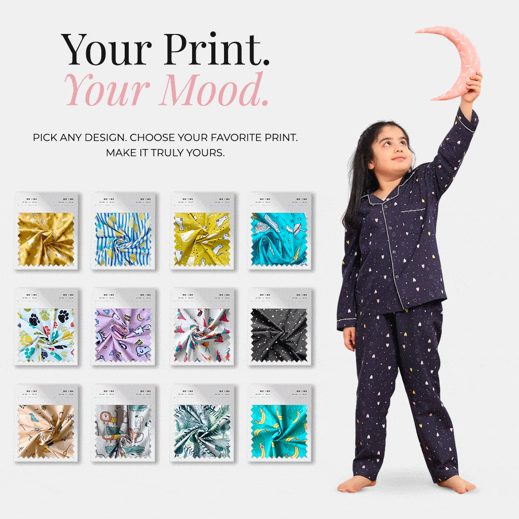Change the print or style — explore our full fabric catalog and customize your night suit.