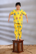 The summer-friendly sleep suit comes with short sleeved shirt and pajamas. The shirt has a pocket patch and the elasticated pajamas come with side pockets. The pair redefines comfort and is definitely a must -add to his collection.
