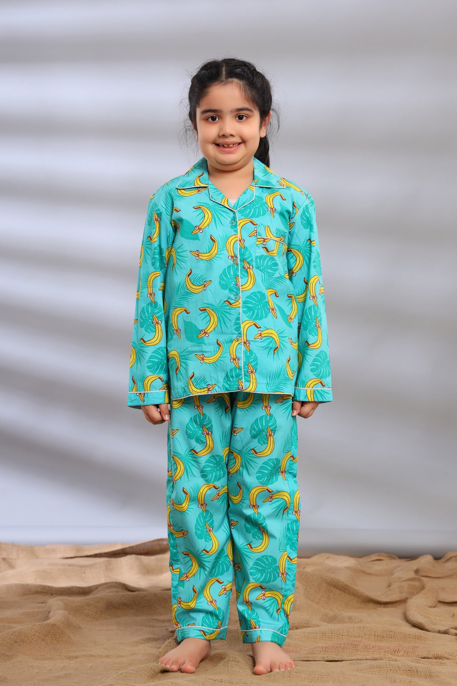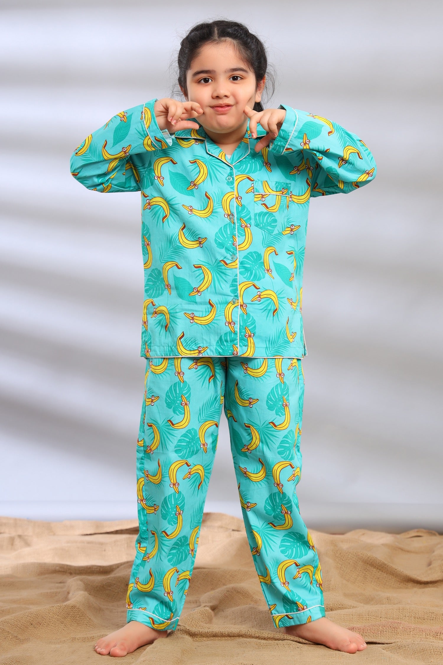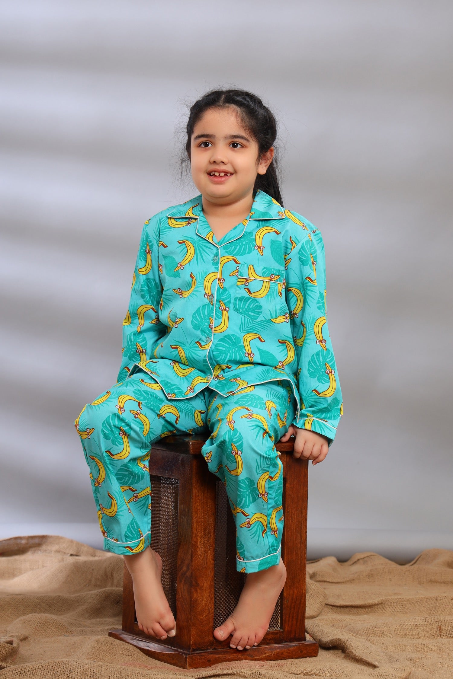 Brighten up bedtime with this girls’ full-sleeve pajama set in cotton, styled in our fun and vibrant Tropical Bananas print.