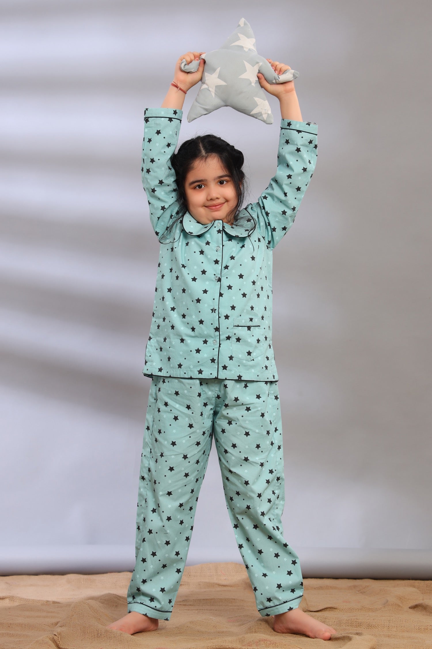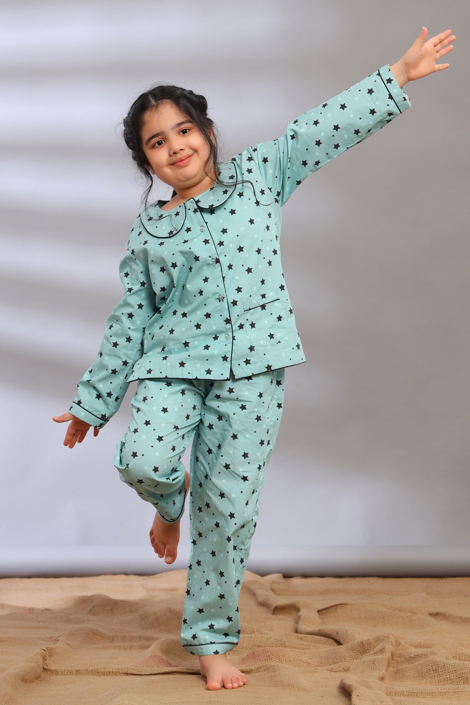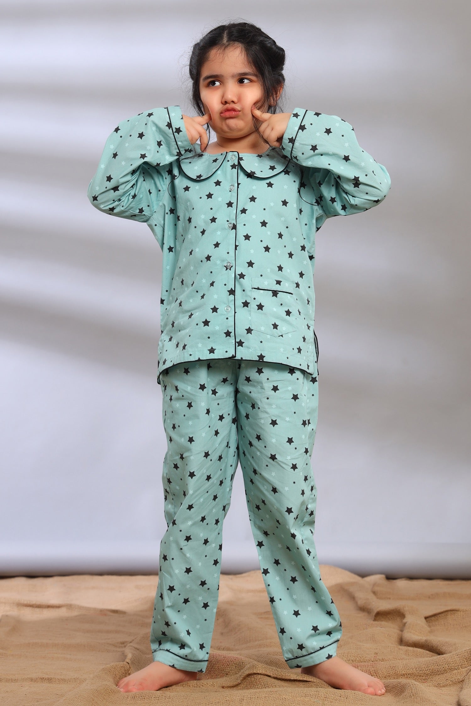 Let her drift into dreamland with the charm of our Twinkling Stars Peter Pan pajama set. The soft cotton fabric with its playful star print makes bedtime feel magical and cozy.