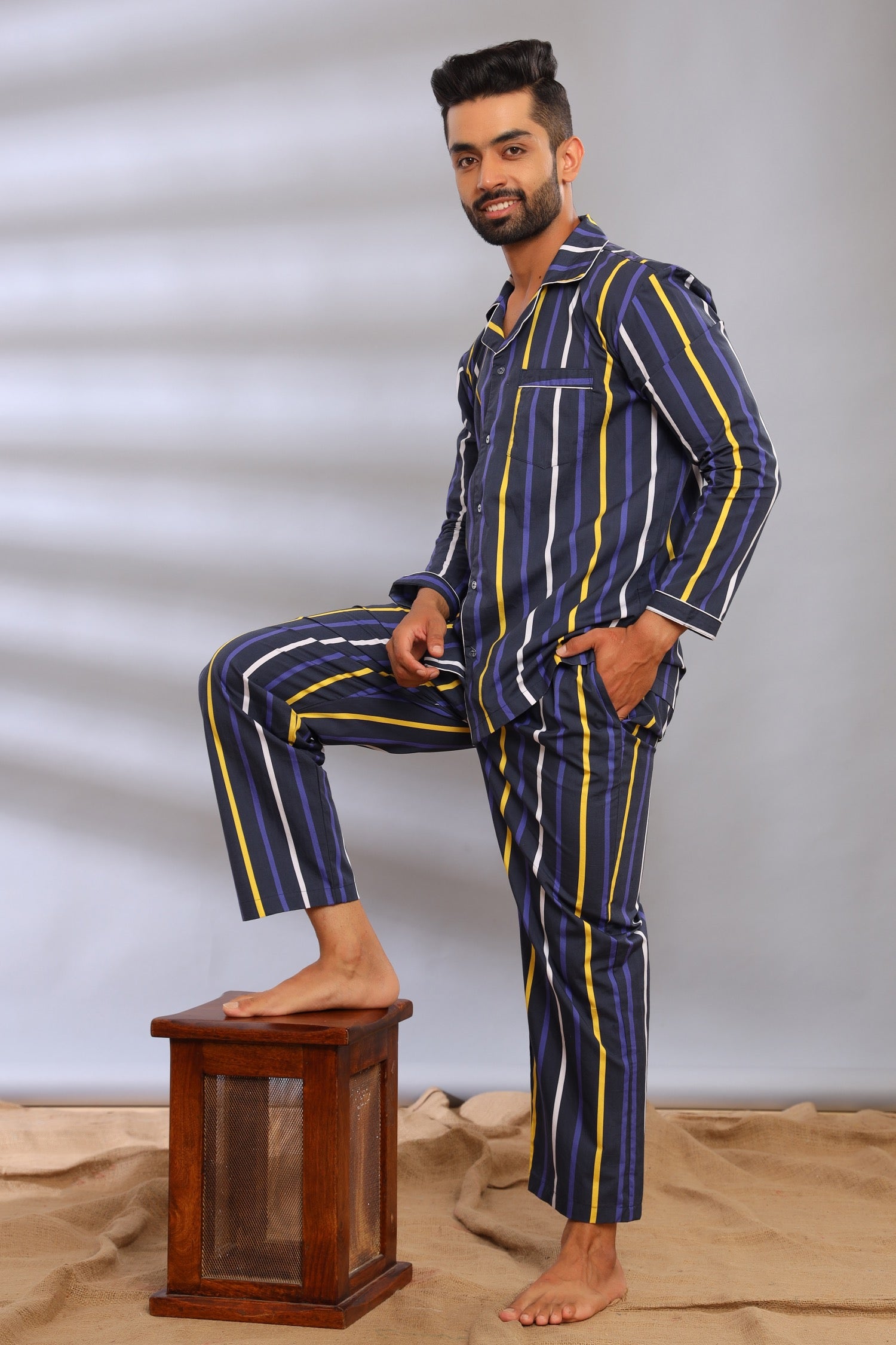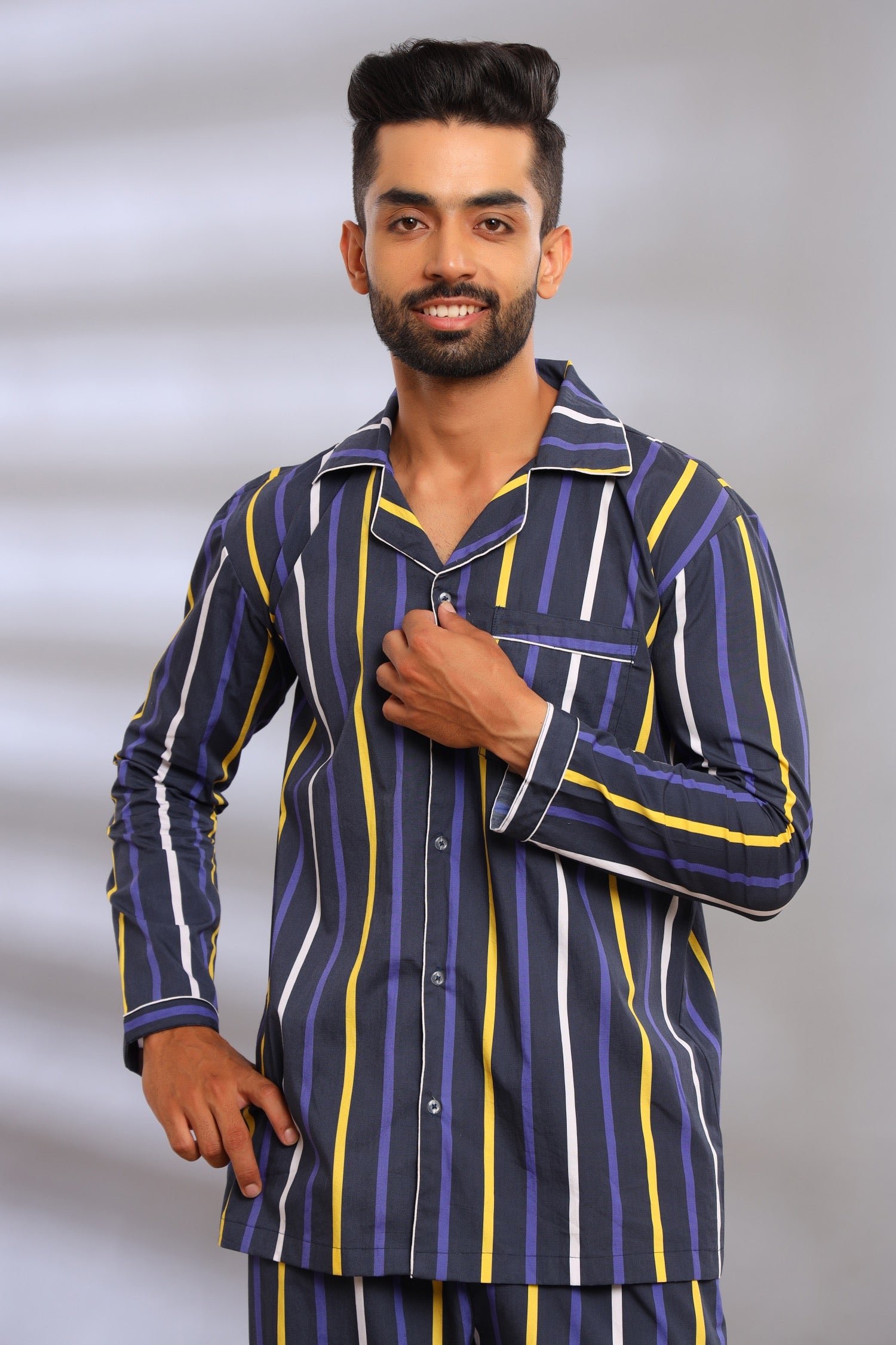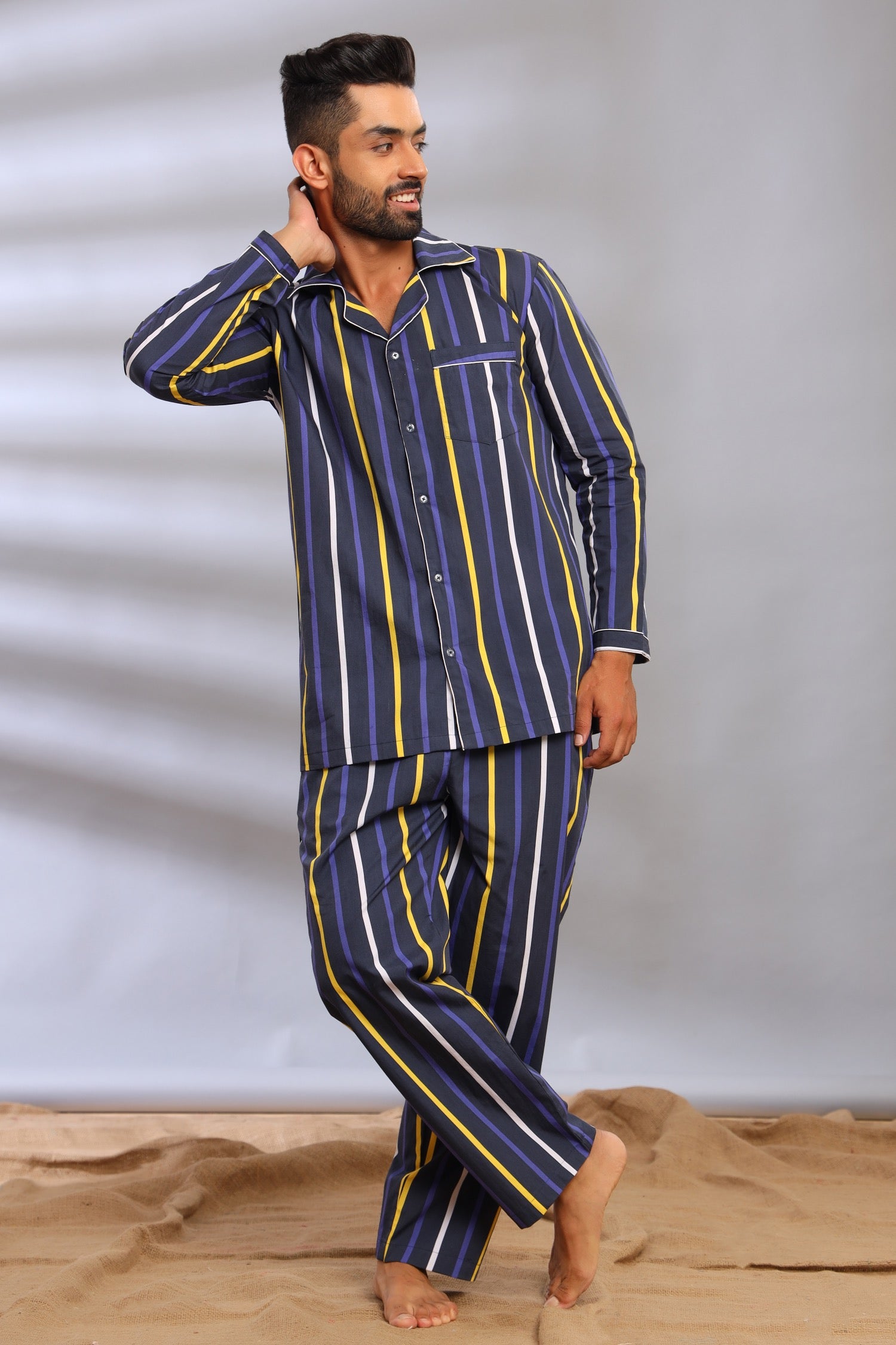 Men's night suits for sleeping are comfortable and simple. Our pajama sets are made of breathable fabrics and are easy to put on, so you can sleep well and look good while lounging through the day.