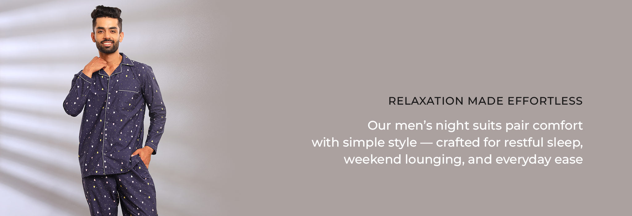 Comfort meets simplicity in men’s night suits built for rest. Our pajama sets combine breathable fabrics and easy fits to ensure you sleep soundly and lounge with effortless style.