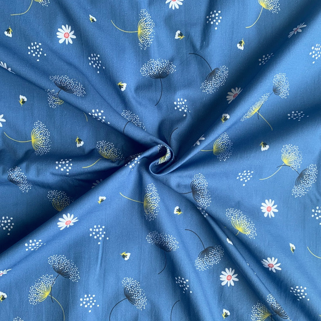 Soft dandelions float across cotton poplin with delicate detail. Light, breathable, and charmingly simple.