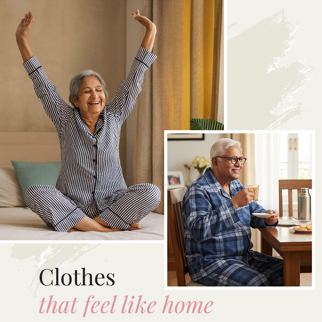 Our designers recommend soft, breathable fabrics with soothing textures — perfect for elderly comfort, ensuring nightwear feels light, kind, and easy all day.