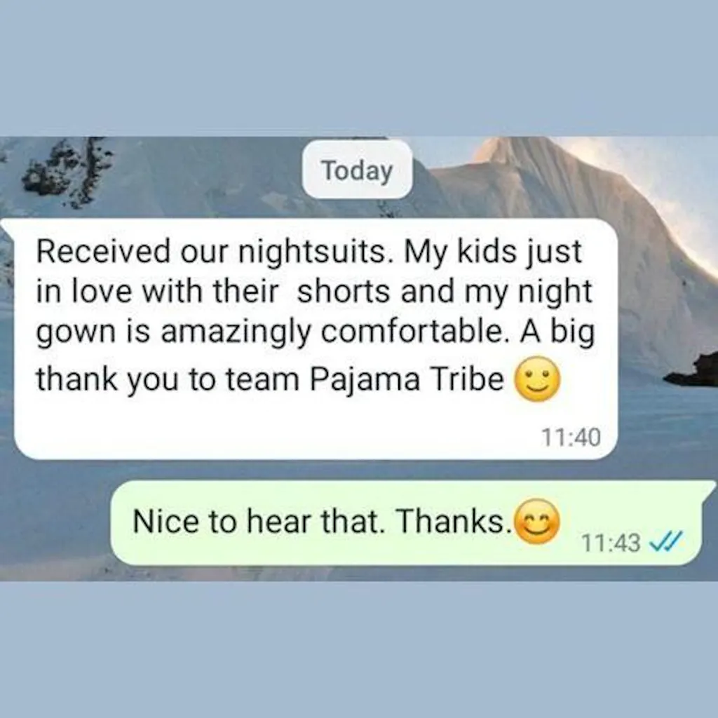 Received our nightsuits. My kids just in love with their shorts and my nightgown is amazingly comfortable. A big thank you to team Pajama Tribe.