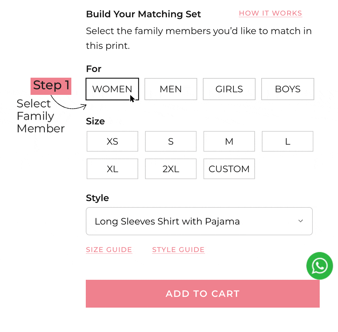 Adults and kids can have different sizes and styles - everything still matches in the same print.