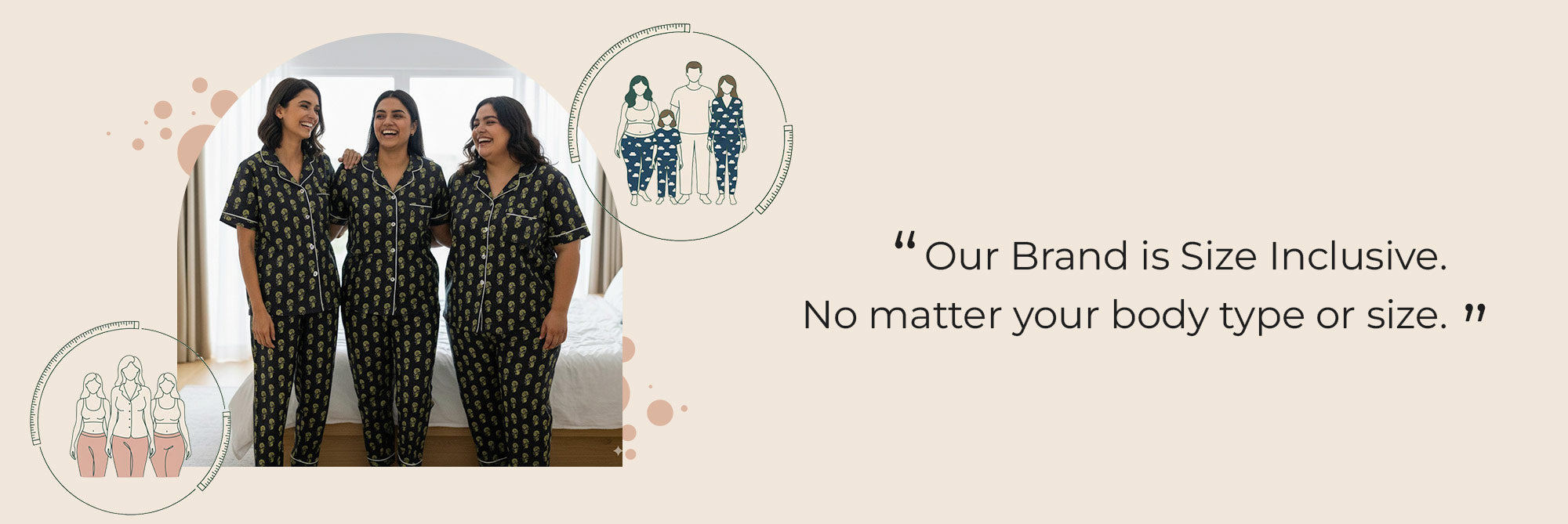 At Pajama Tribe, we design plus-size night suits to celebrate you. Nightwear crafted with care so you get the same playful prints, luxurious satins, and cozy cottons as every other size. Because comfort isn’t a privilege - it’s a right.