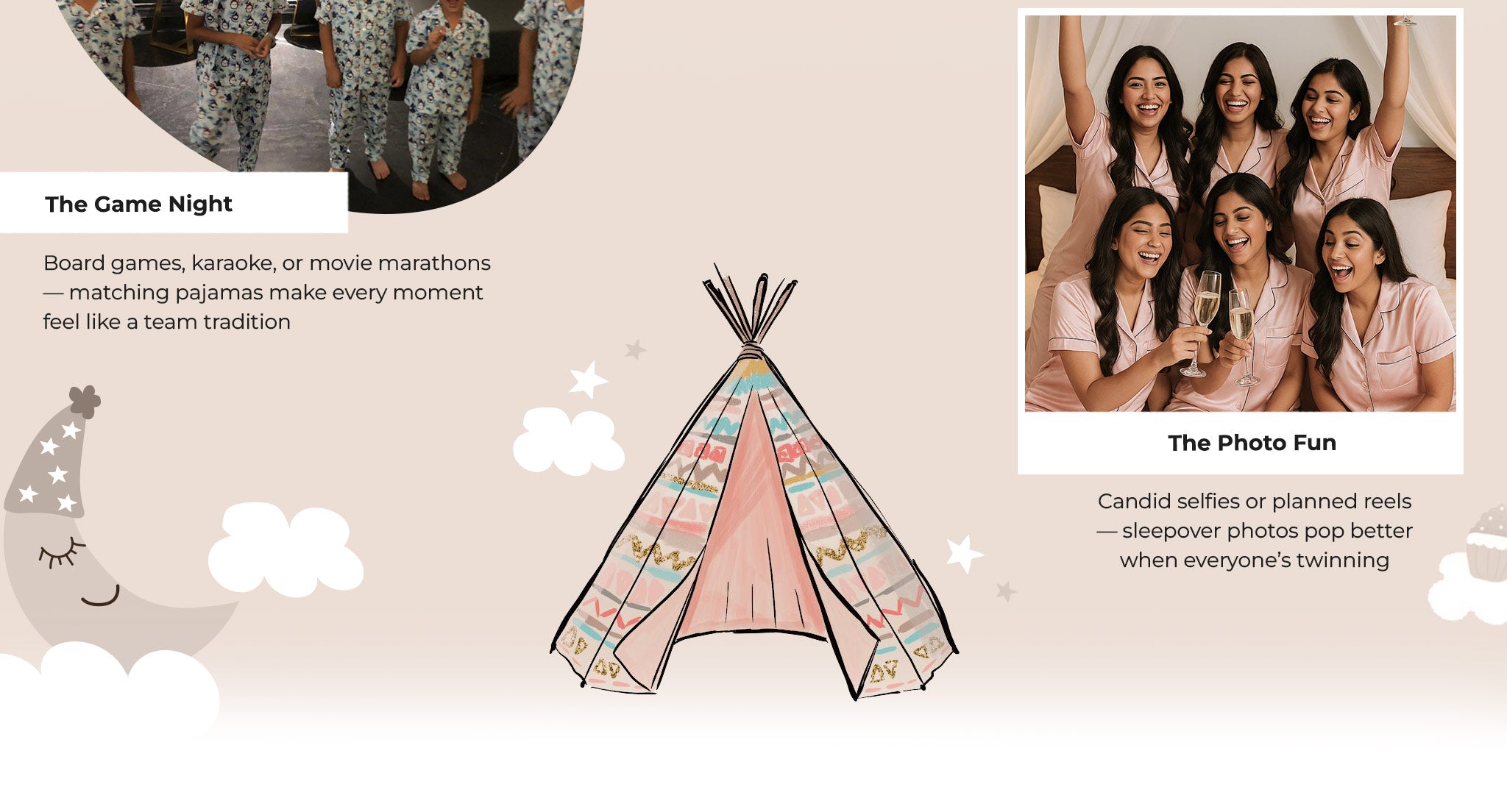 Sleepovers are about more than just staying up late — they’re about laughter, games, midnight snacks, and bonding that lasts forever. Our matching pajama sets bring everyone together in style, turning simple nights into unforgettable rituals your friends will want to repeat again and again.