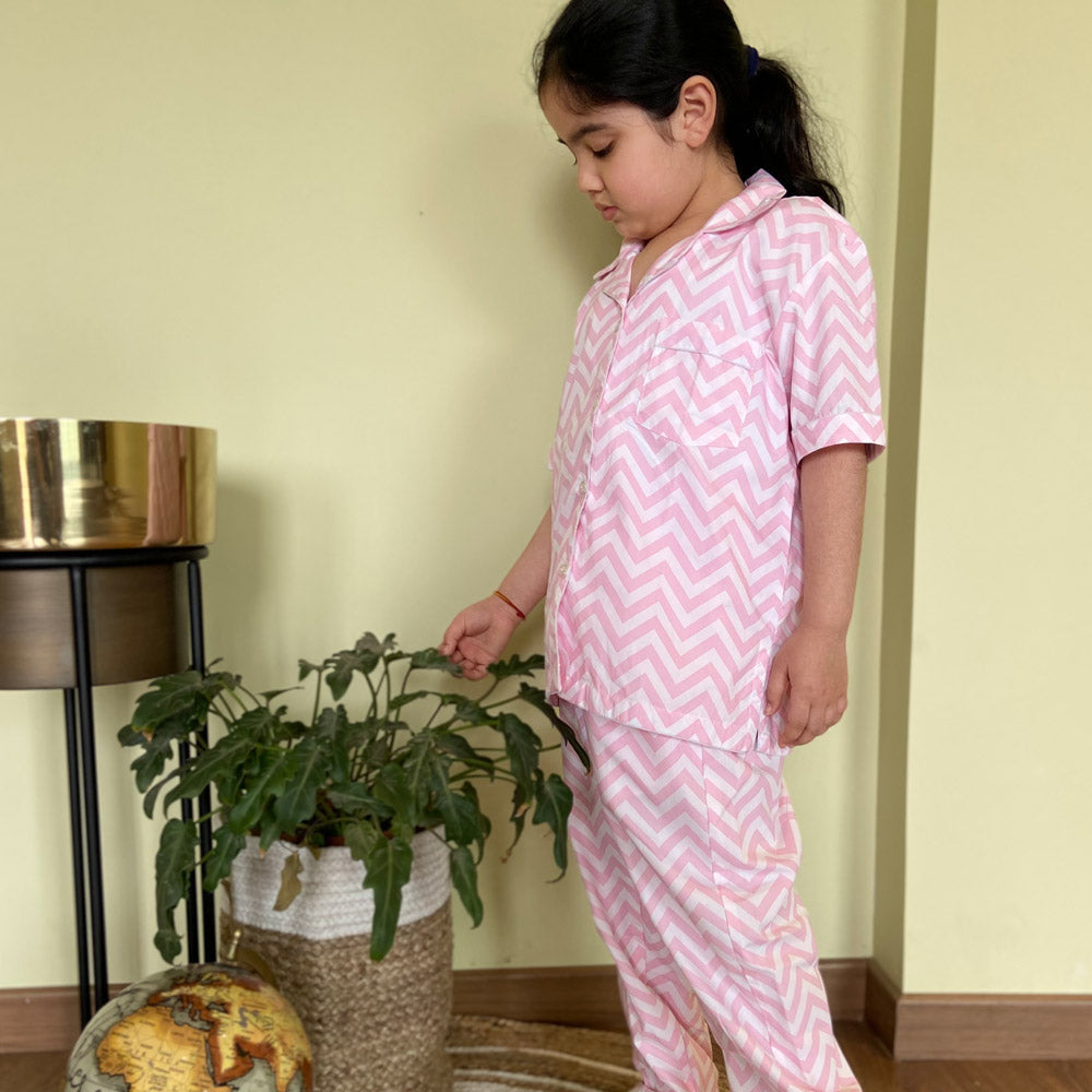 Fun zigzag pattern designed for pajama sets and cheerful girls’ sleepovers.