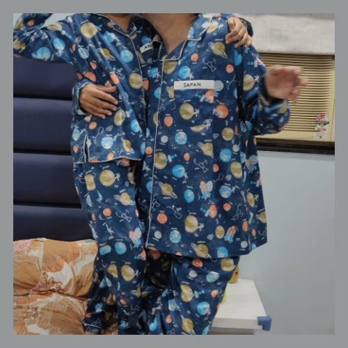 Ideal for space-loving kids, birthday pajama parties, or siblings twinning in cosmic prints that fuel their imagination.