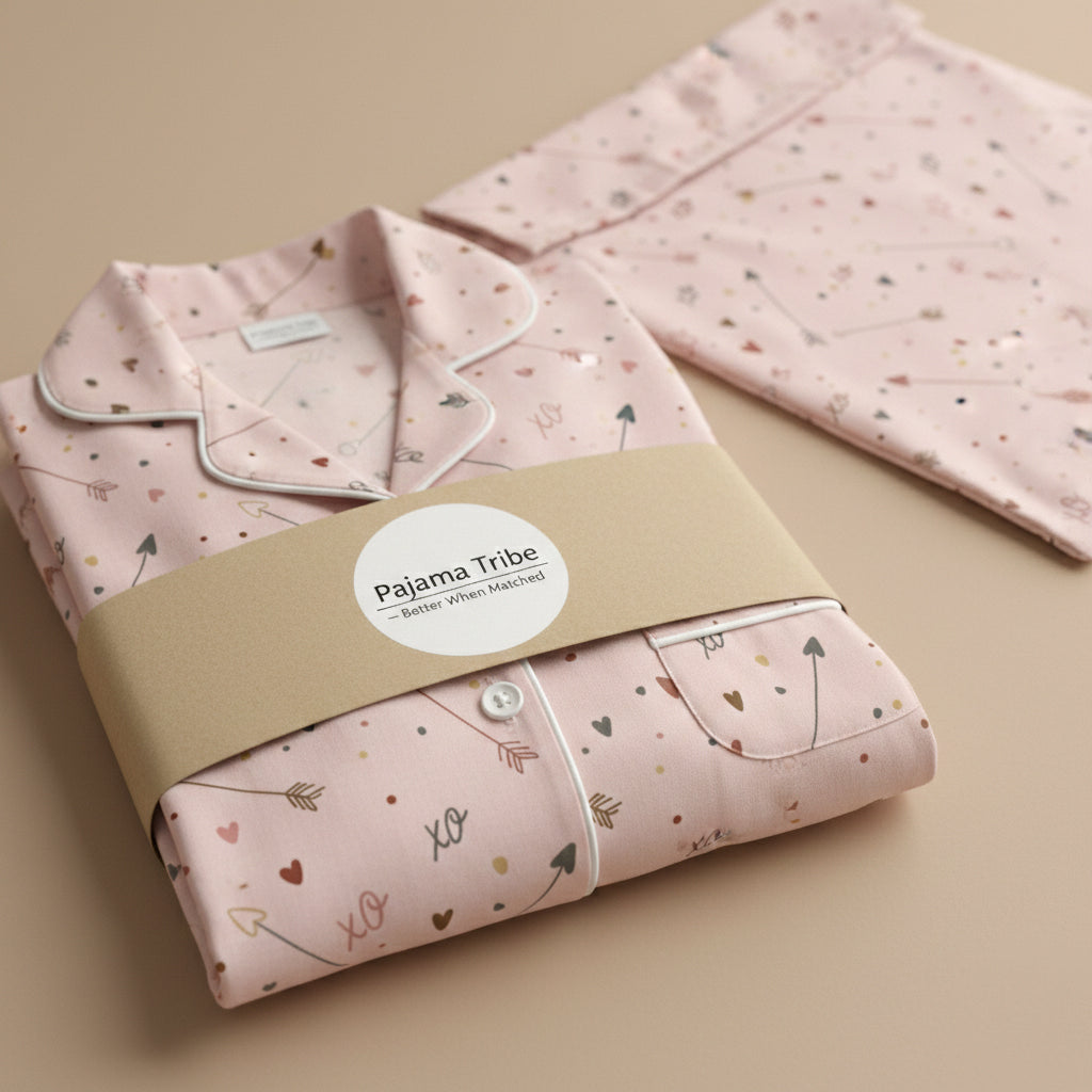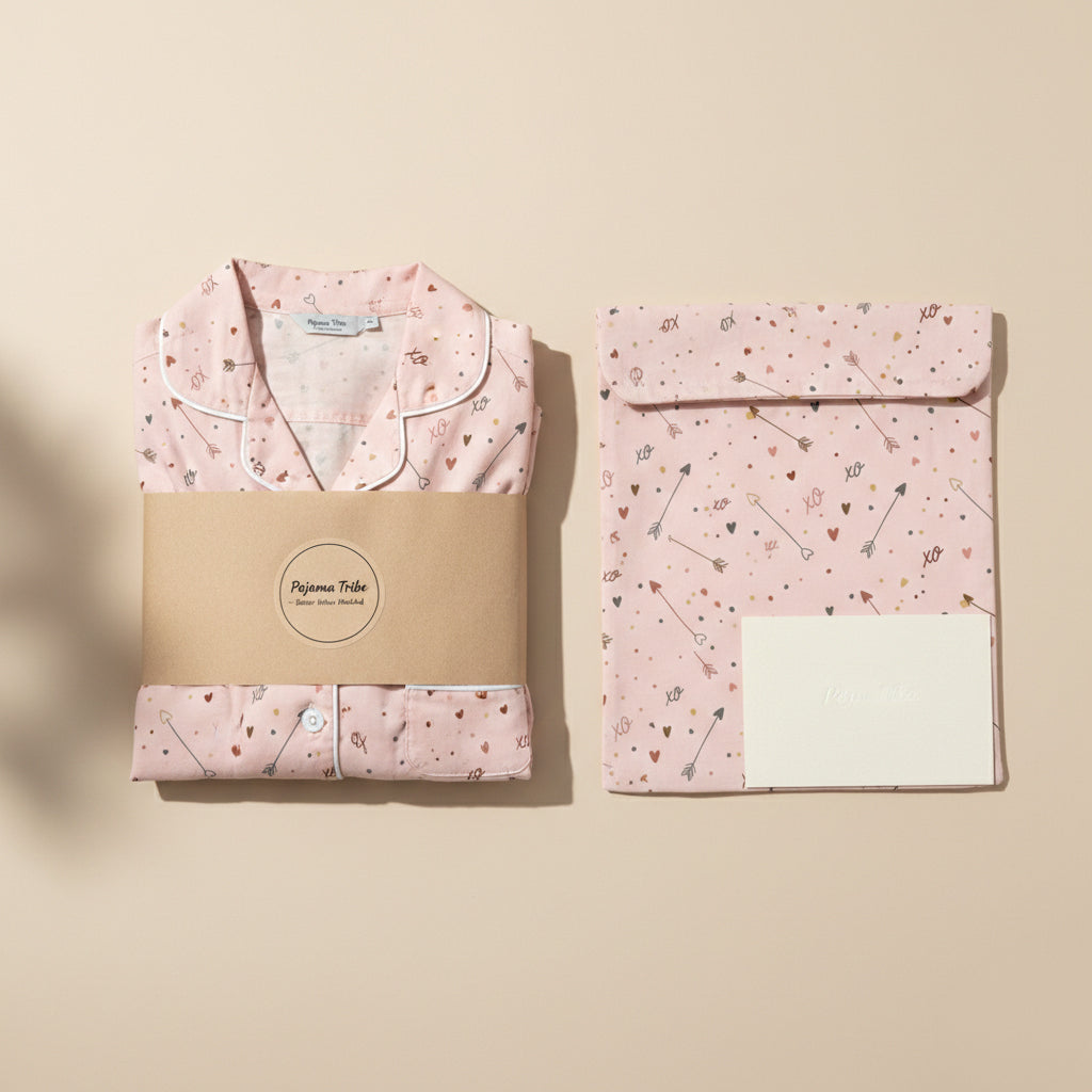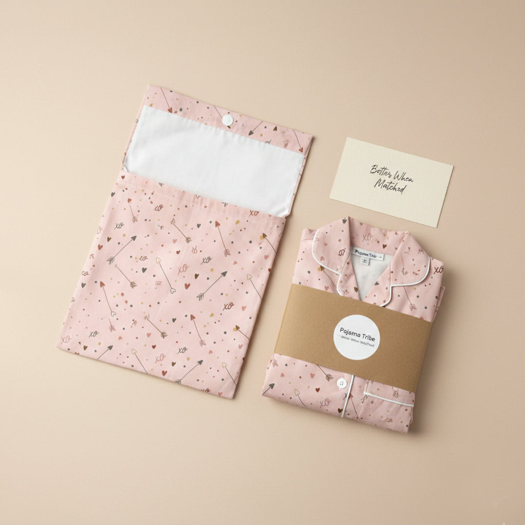 • A matching fabric envelope-style bag in the same print as your pajama set